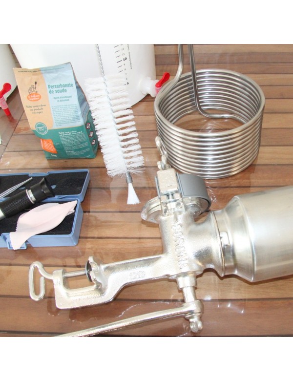Enfin, un moulin Brewferm et un serpentin refroidisseur en inox viennent compléter le pack.