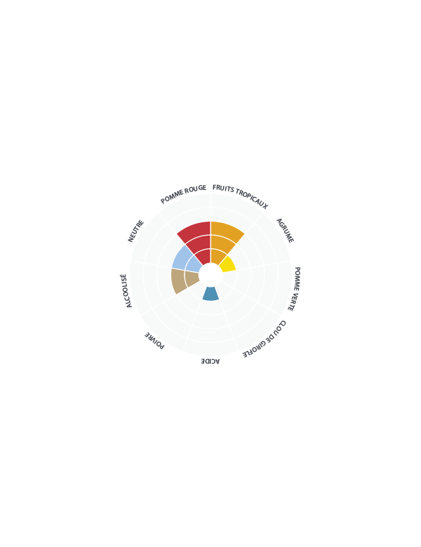 Des notes marquées d’abricot et d’autres plus subtiles de fruits tropicaux et d’agrumes viennent compléter les arômes de houblon.